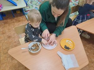 | Родители ясельной группы “Ладушки», совместно с детьми, приняли участие в семейной мастерской «Покорми птиц зимой». Воспитатели группы Колобкова Надежда Владимировна и Баринова Наталья Сергеевна провели для родителей мастер-класс «Простые эко-кормушки своими руками». Эти кормушки не только простые, но и экологические, а значит не будут загрязнять окружающую среду. Изготовленные съедобные кормушки развесят на территории детского сада. ![]() ![]() ![]() |
